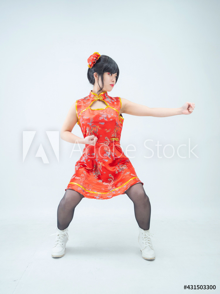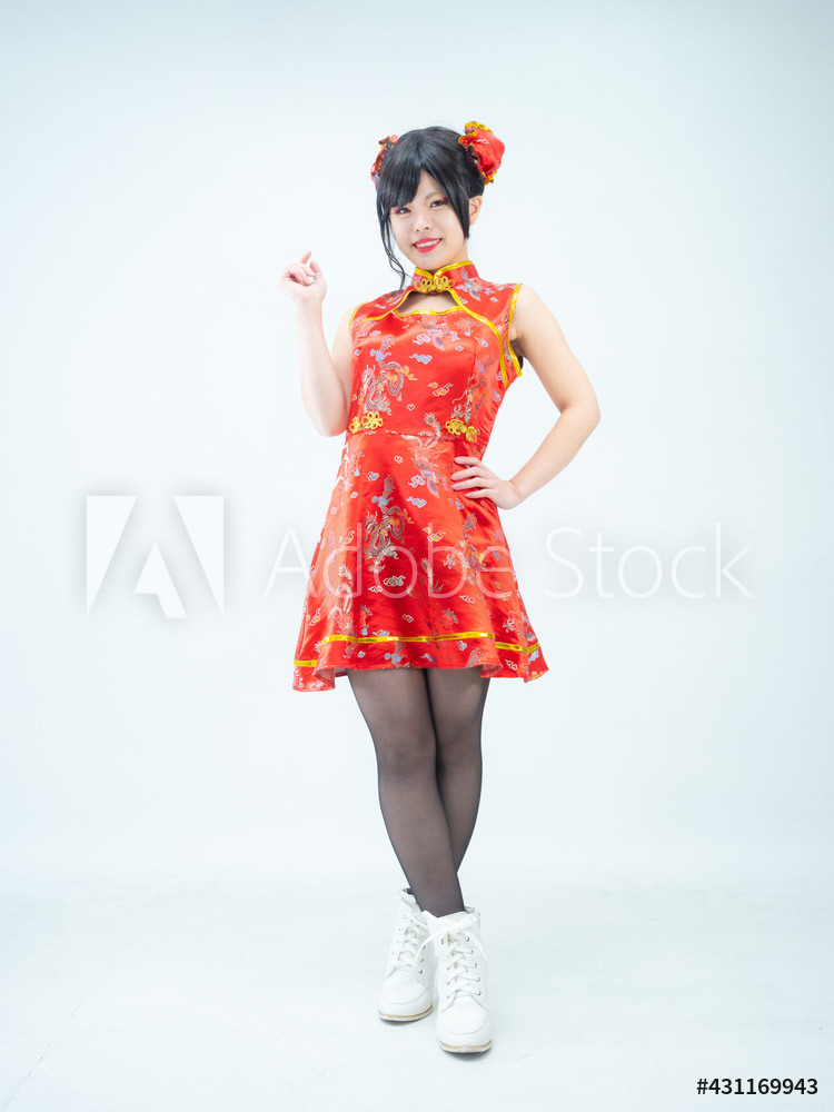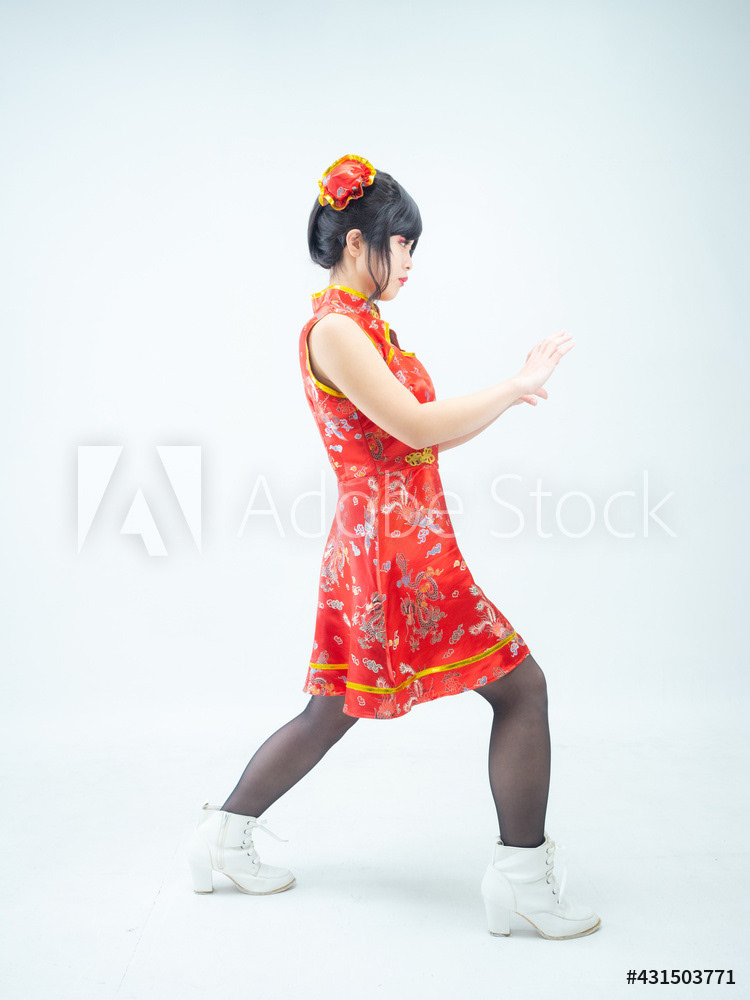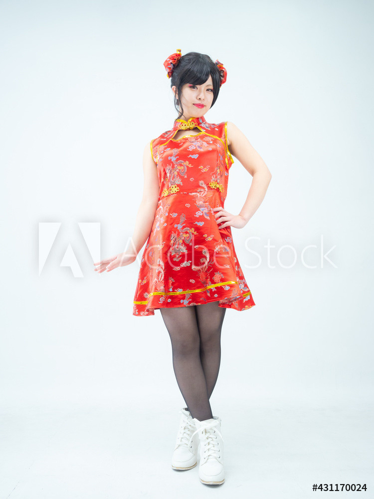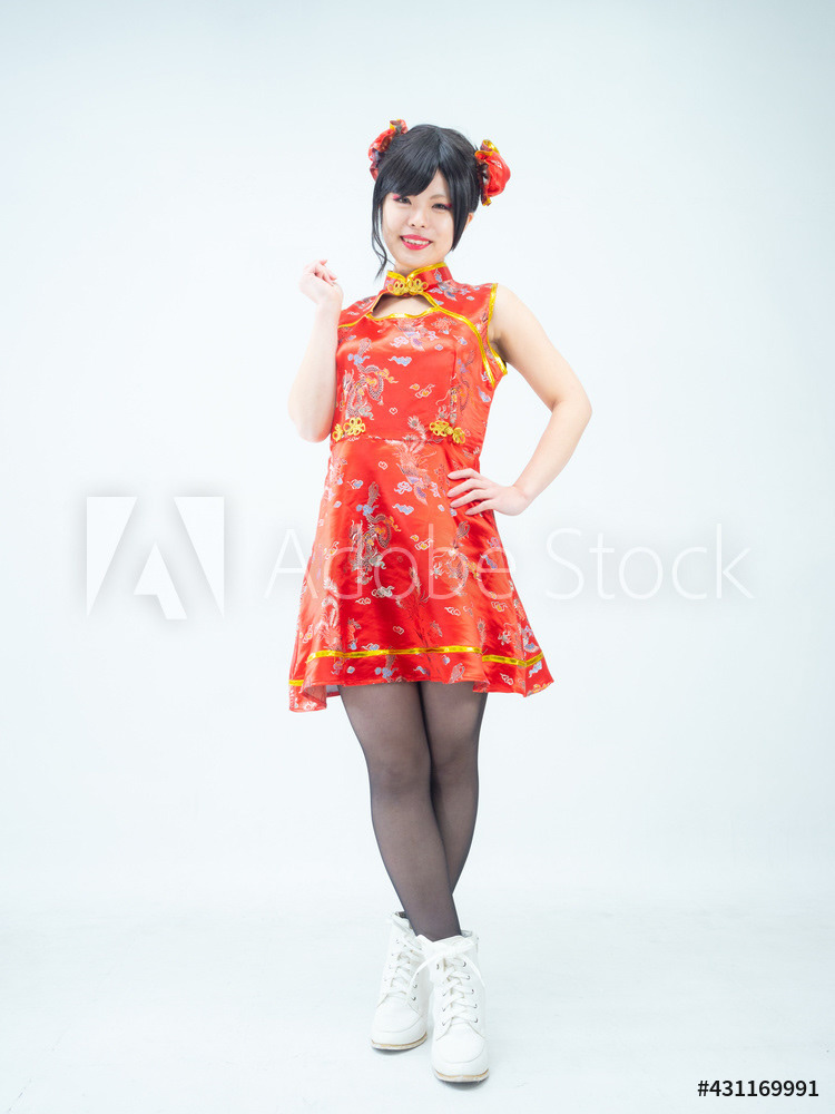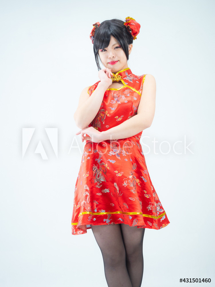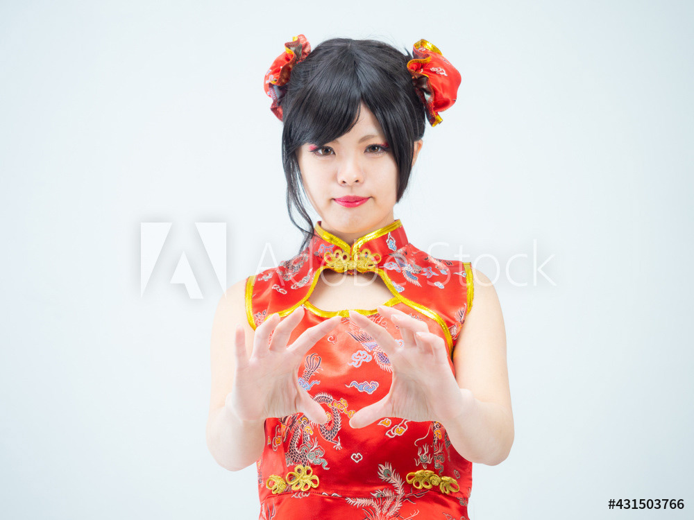 赤いチャイナ服の女性